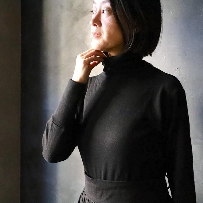 コットンニットが2重になったWフェイス素材のタートルネック。